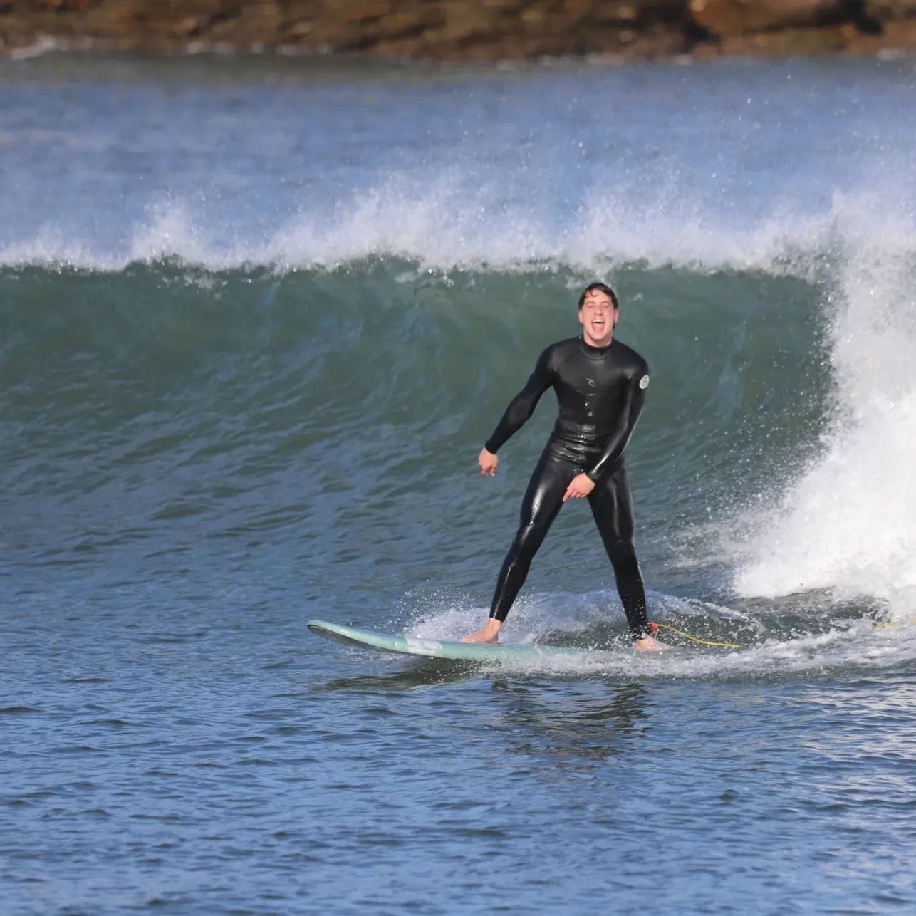 Trabajar en Sensación me permitió descubrir el surf de una forma mucho más amable, cercana y familiar. Compartir momentos, risas y buenas energías en una playa impresionante, lejos de la vorágine y el ruido de otros spots masificados. Tan bien me sentí que lo que iba a ser solo un verano acabó convirtiéndose en una decisión de vida: vine para unos meses… y me quedé a vivir por aquí.